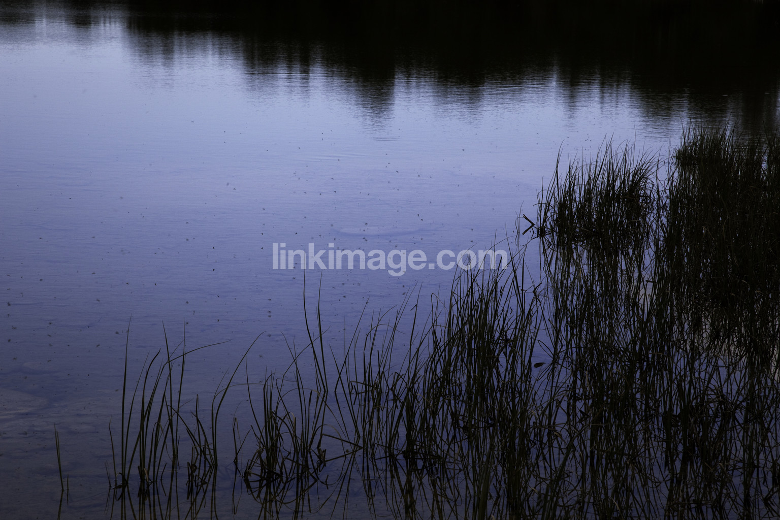 - lake, reed, light, water, water surface, dusk, evening, summer, reflection, mosquitoes, flies, insects, mood, blue