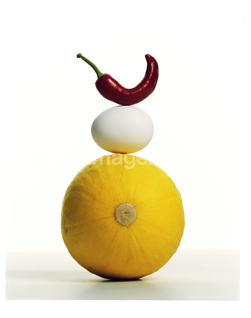 - food, fruits, vegetables, eggs, pepper fruit, melon, still life, three, yellow, form