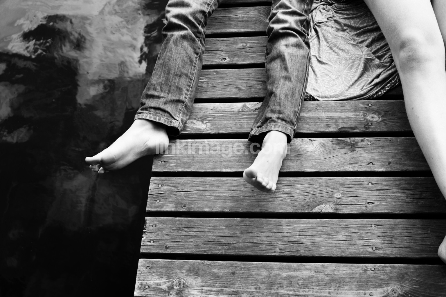 bridge, lake, water, feet, bone, jeans, skirt, dress, reflections, wood, planks, knee, spikes, tear