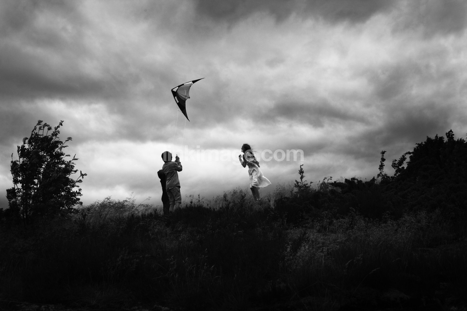 children, girl, boy, fly, kite, cloud, drama, dramatic, meadow, country, bush, play, bus, dusk, dress