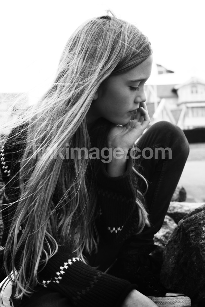 girl, soft, hair, sense, sweater, wind, portrait, relaxed, flag, shoes, house, stones