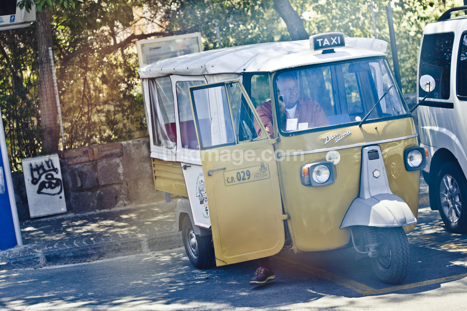 - taxi, mediterranean, italy, moped taxi, driver, break, call, telephone, park