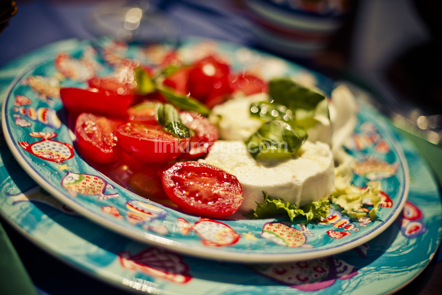 food, dinner, porcelain, mozzarella, tomato, basil, caprese, colorful, rose, wine, ducat