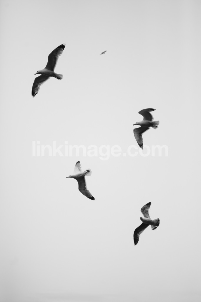 bird, seagull, herring gull, escape, fly, speed, off, look out, four, five, distance, group, sky