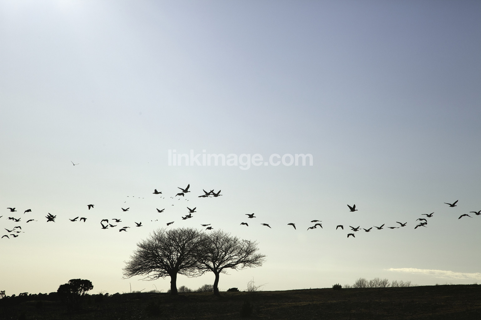 spot, birds, geese, migratory birds, horizon, tree, graphic, sky, gotland, fårö, fly, light, nature, fall, weather