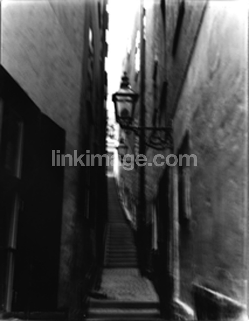 - alley, lamp, steps, buildings, streetlight, er087, narrow, fuzzy, blurred