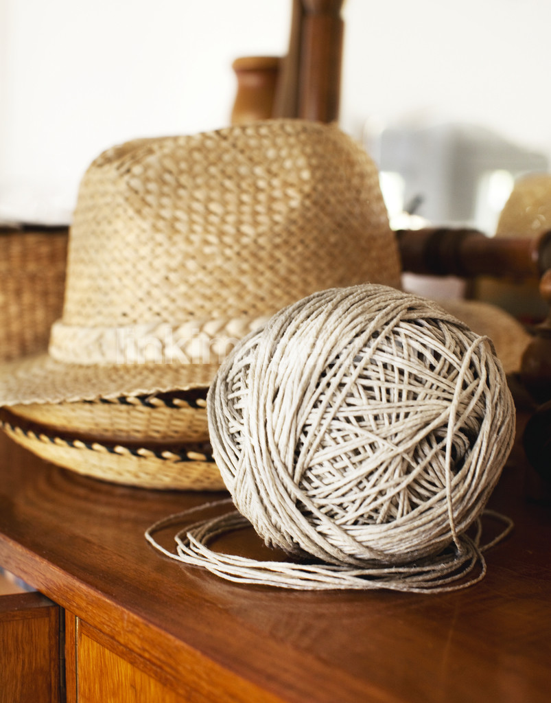 - straw hat, staple, wooden cupboard, spool, summer, holiday, sun, interior, still life, hat, caps, string