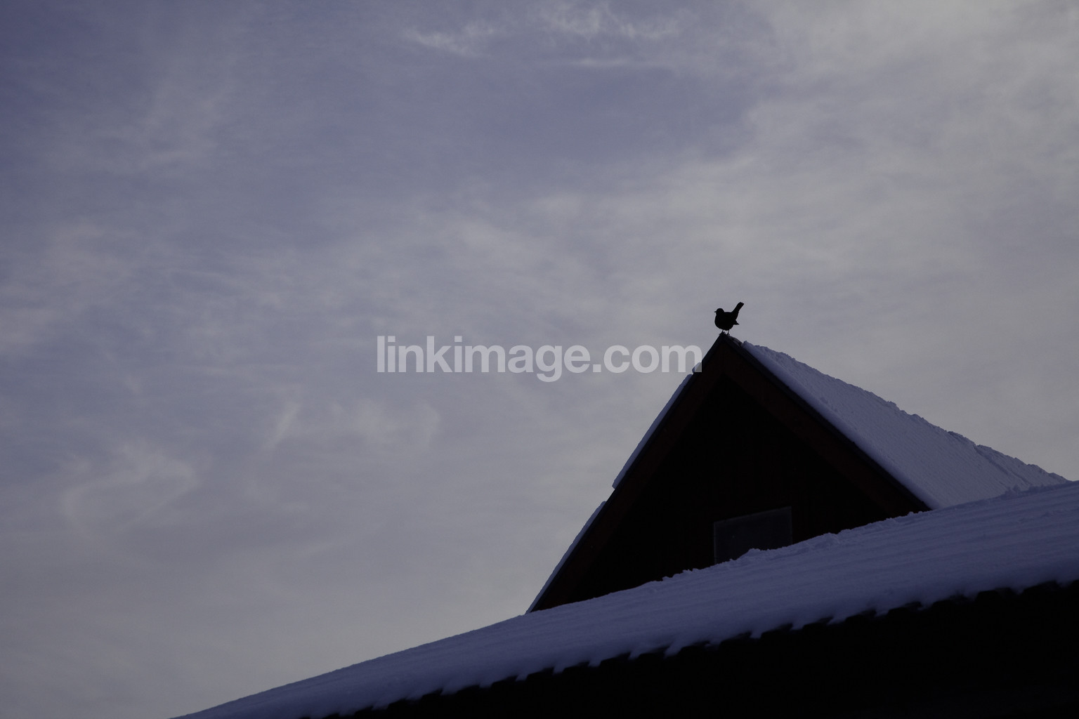 winter, snow, mood, winter atmosphere, light, barn, bird, blackbird, weather, dusk, sky, country, ceiling