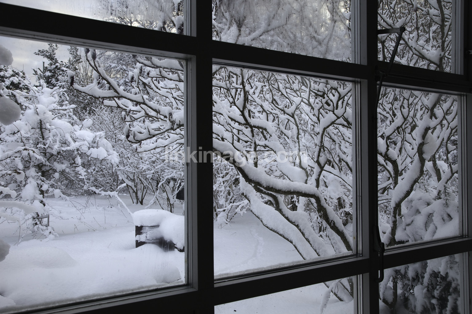 house, lodging, garden, winter, snow, tree, still, light, silent, views, white, cool, cold, window, dawn