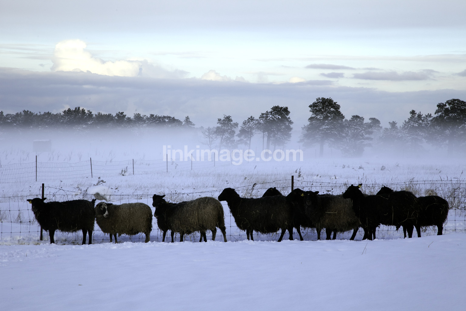 spot, winter landscape, snow, cool, weather, lamb, meat, wool, gotland, fårö, fog, may, group, floc, rural