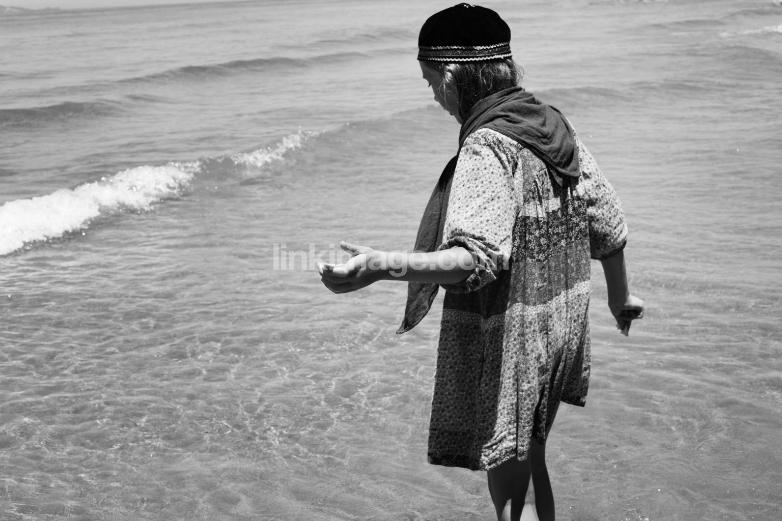 girl, shore, waves, foam, sea, swim, fez, hair, hood, reflections, children, play, water, summer