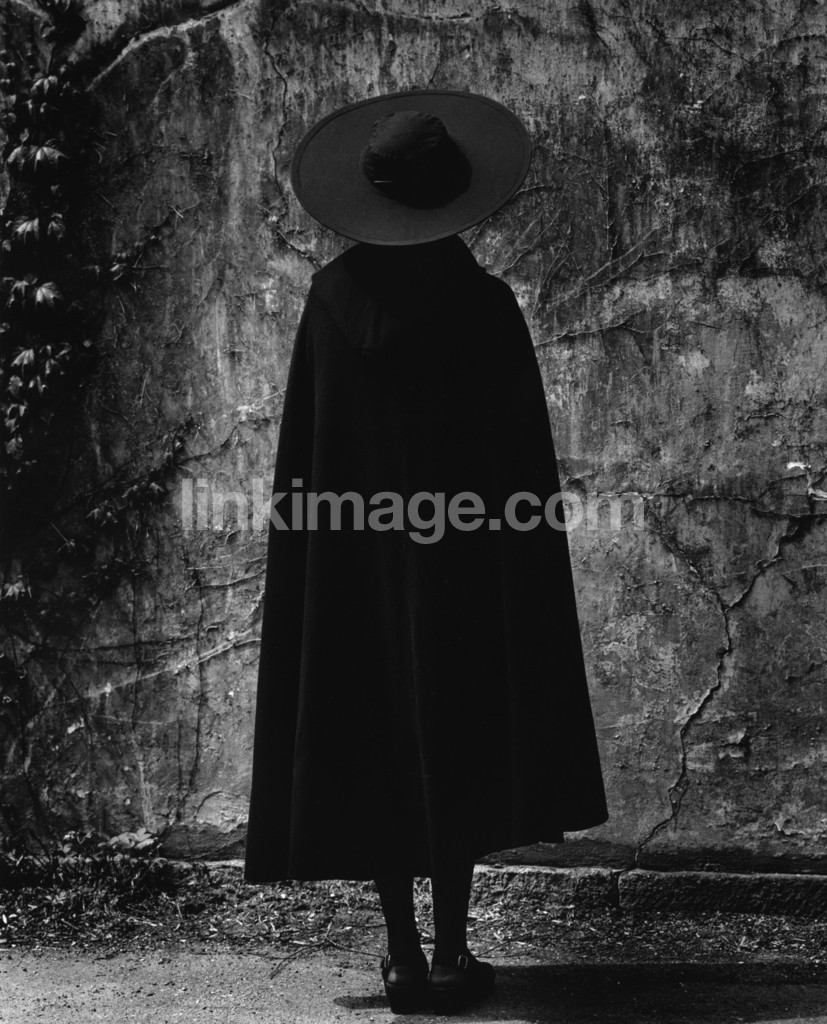 cap, hat, headdress, rear, hidden, hide, coat, black, person, graphic, er092