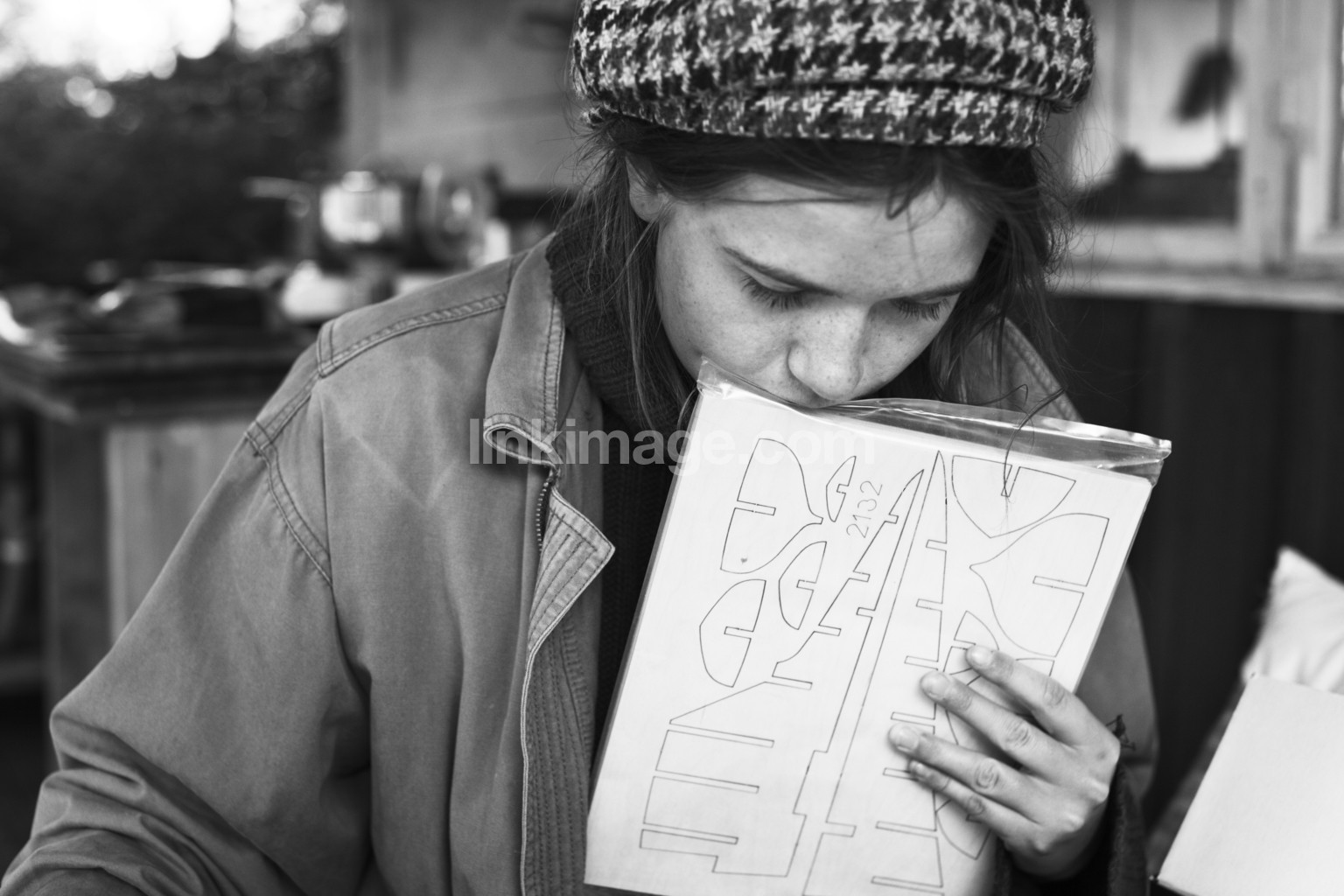 - girl, window, cap, knitted, hair, portrait, house, façade, drawing, turtleneck, sweater, jacket, youth, teen, hobby, model, summer