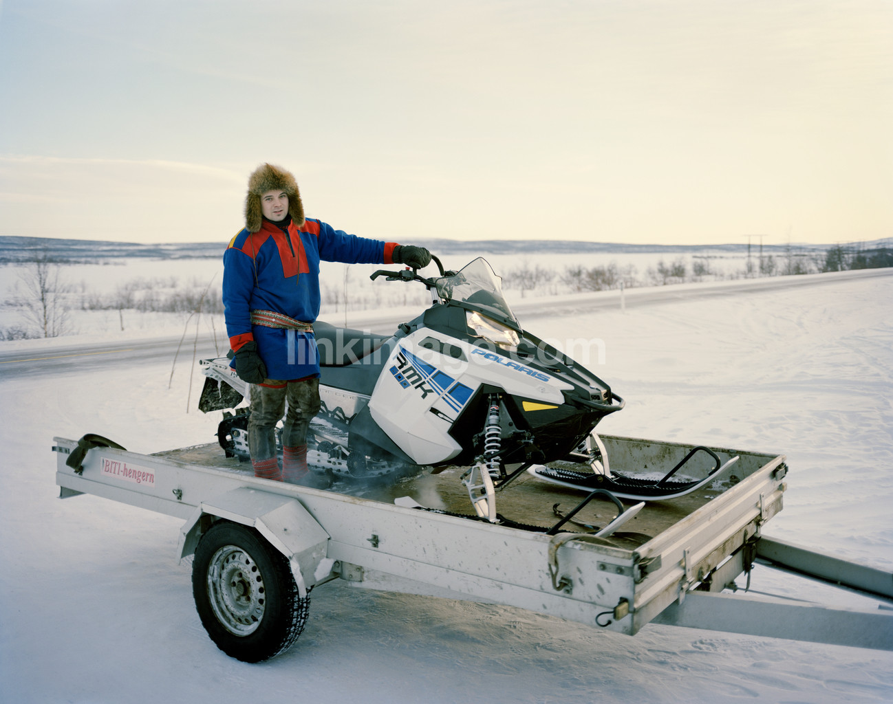- portrait, sami, snow, scooter, flatbed, cold, costume, winter, spot, male, shipping, snowmobile, load