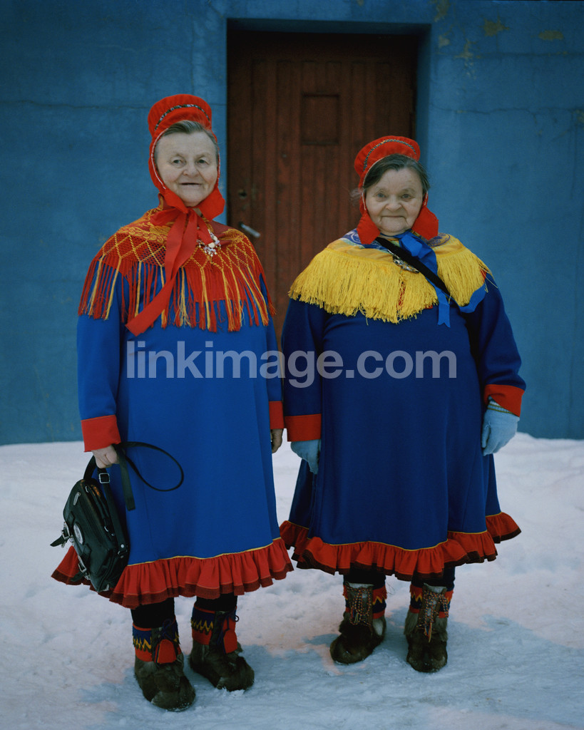 - portrait, sami, clothes, cold, snow, winter, lapland, costume, old, female, women, two
