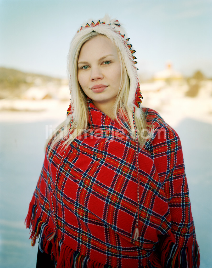 - portrait, sami, clothes, cold, snow, winter, lapland, costume, female, shawl, red, cool