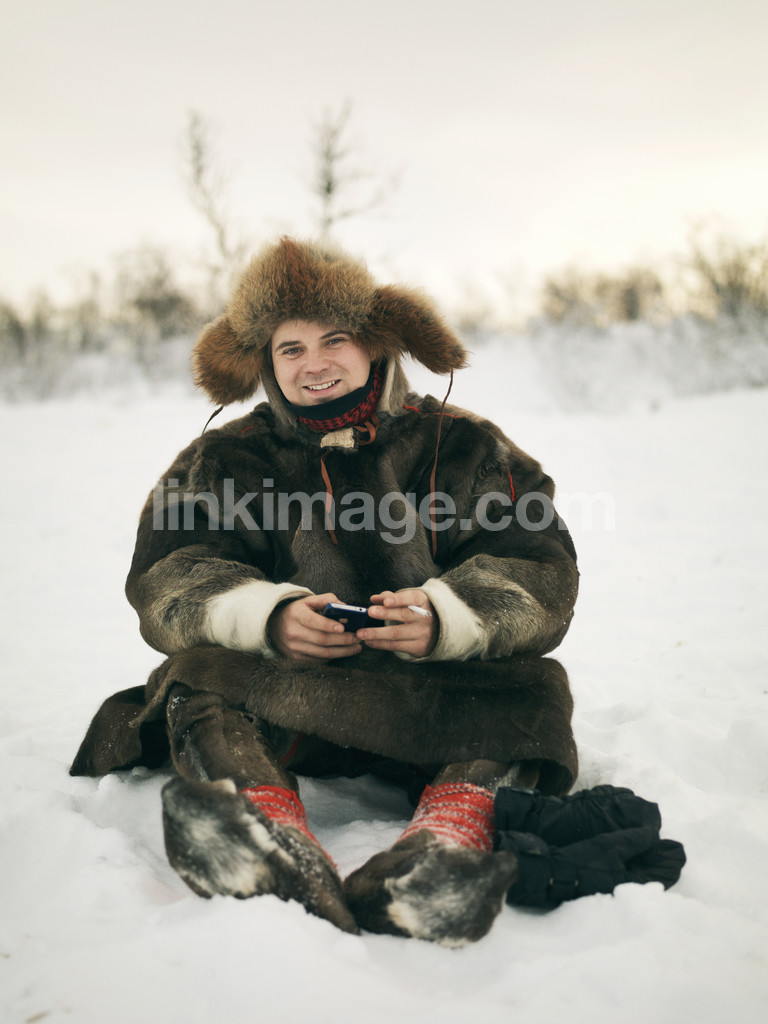 - portrait, sami, clean, clothes, cold, snow, winter, lapland, reindeer herders, male, fur, break
