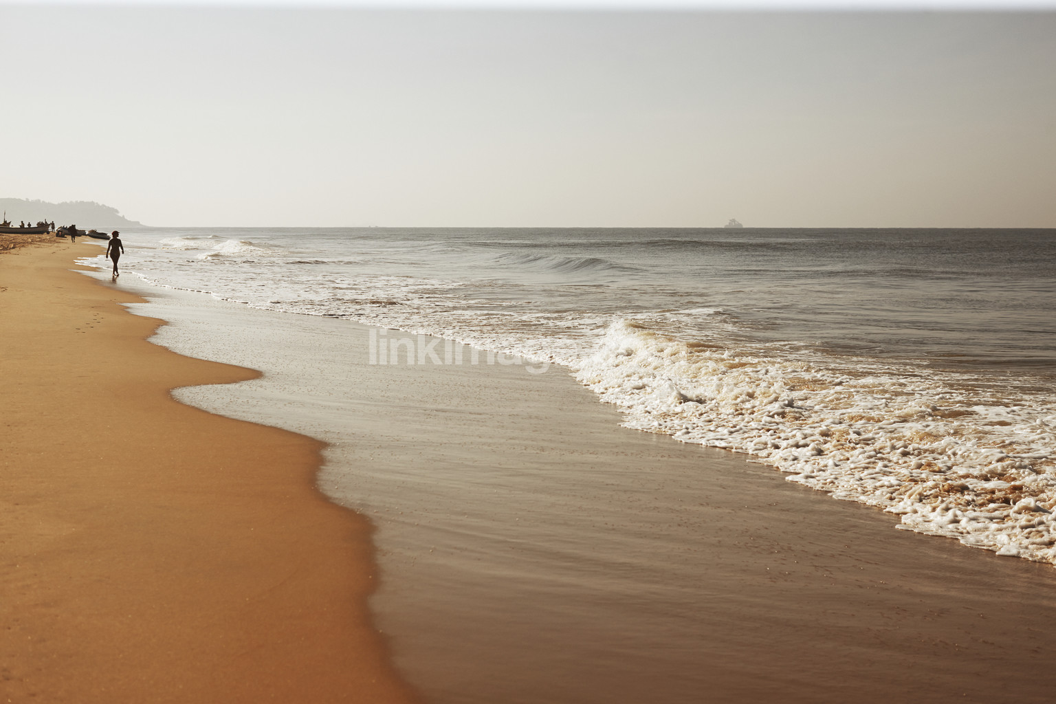 water, sea, shore, sand, swim, summer, waves, walk, an, alone, female, våghorisont