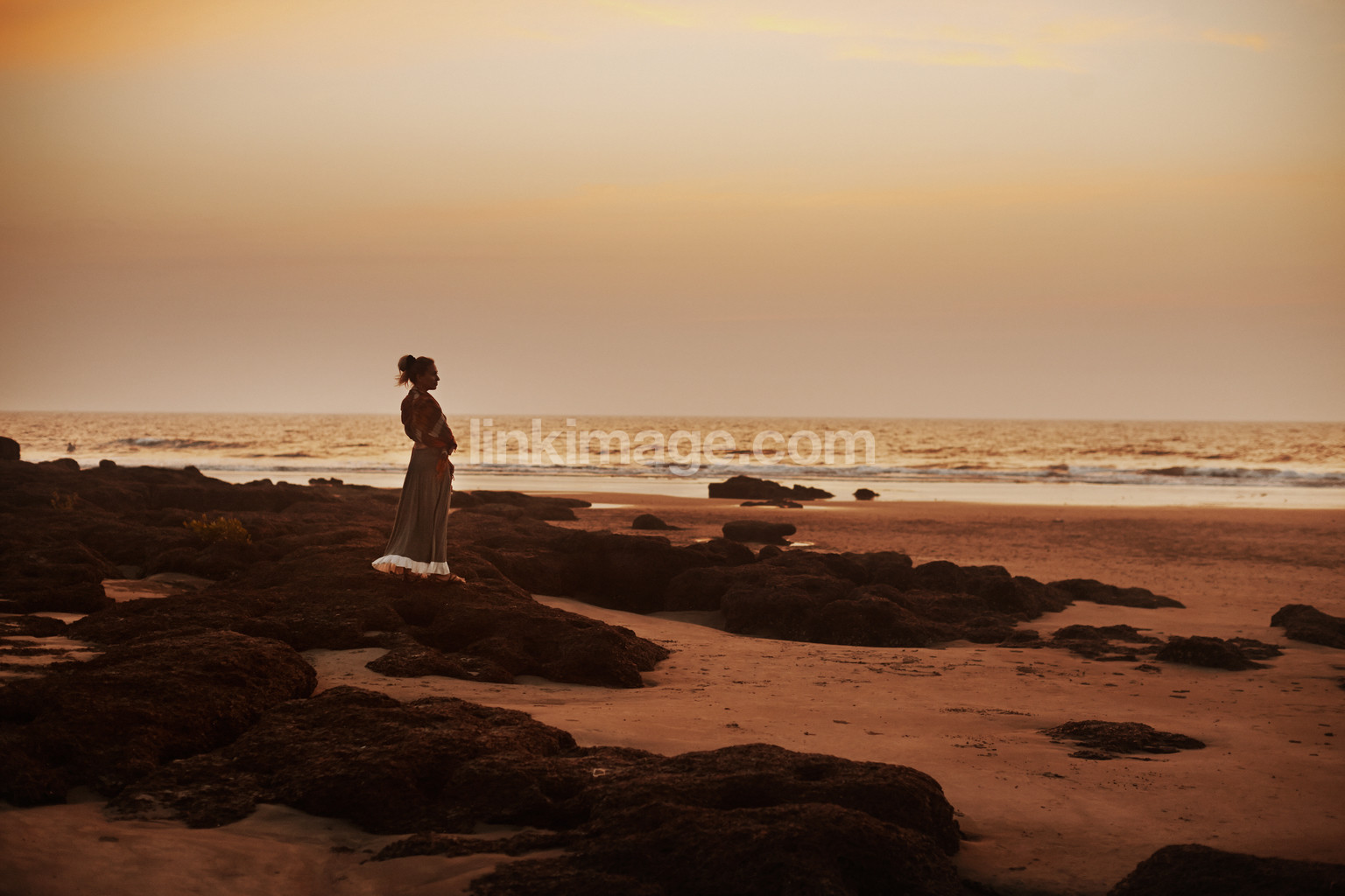 water, sea, shore, sand, evening, female, sunset, enjoying, holiday, summer, horizon, leave