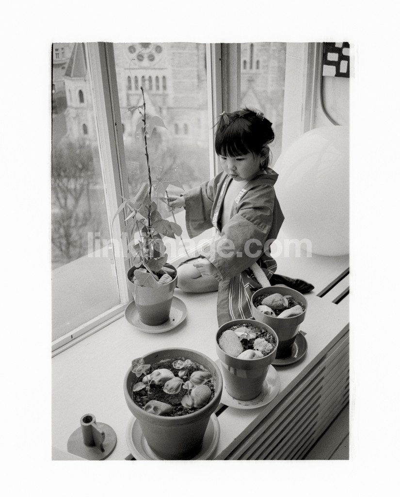 - children, girl, growing, jars, plants, potted, vegetables, window