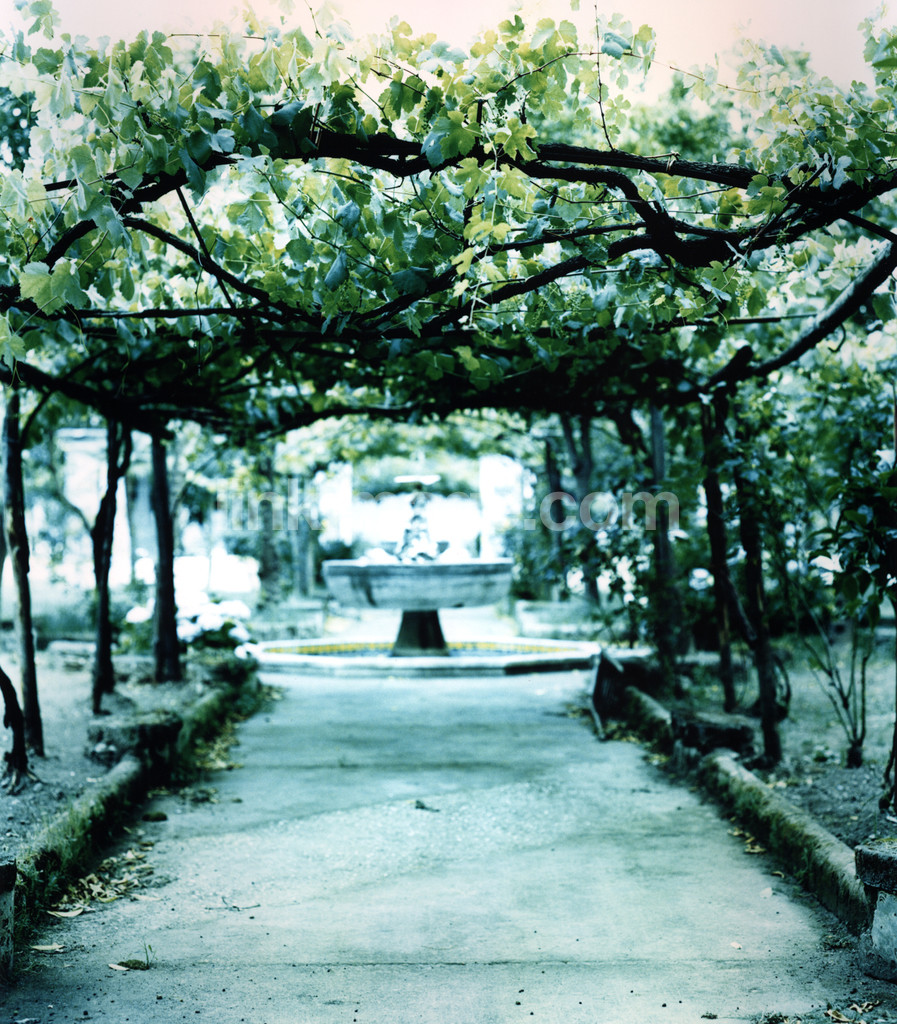 fountain, fountain, backyard, grusgång, viticulture, er156, branches, leaf, plants, fruits, grapes