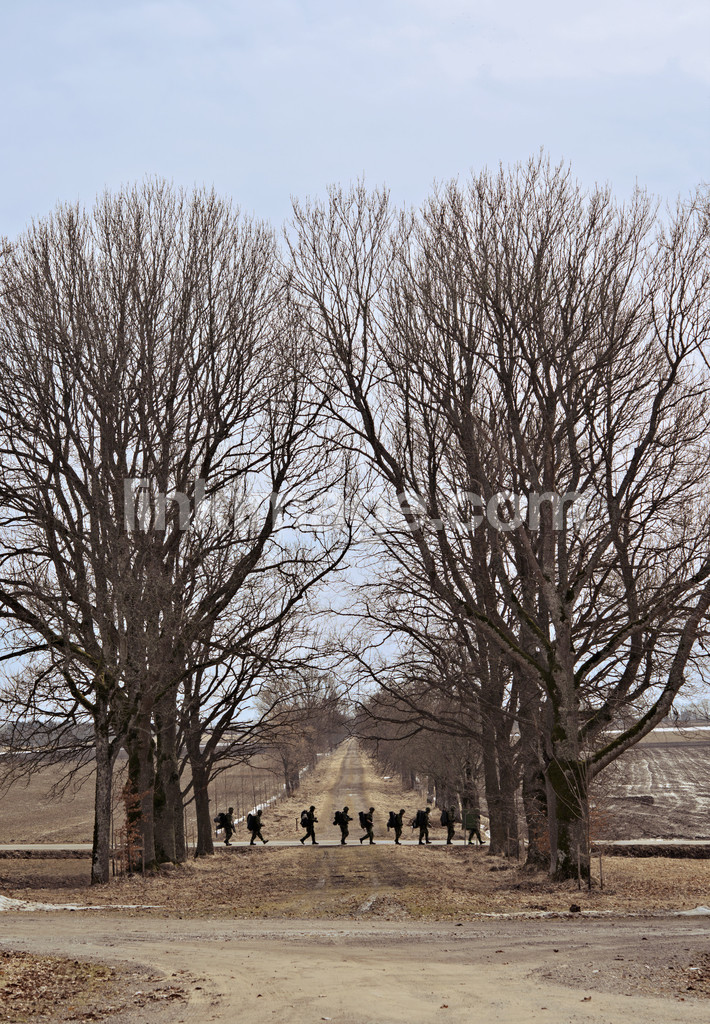 - tree, avenue, soldiers, soldier, go, linköping, sweden, blue, sky, march, road, defense, defence forces, military