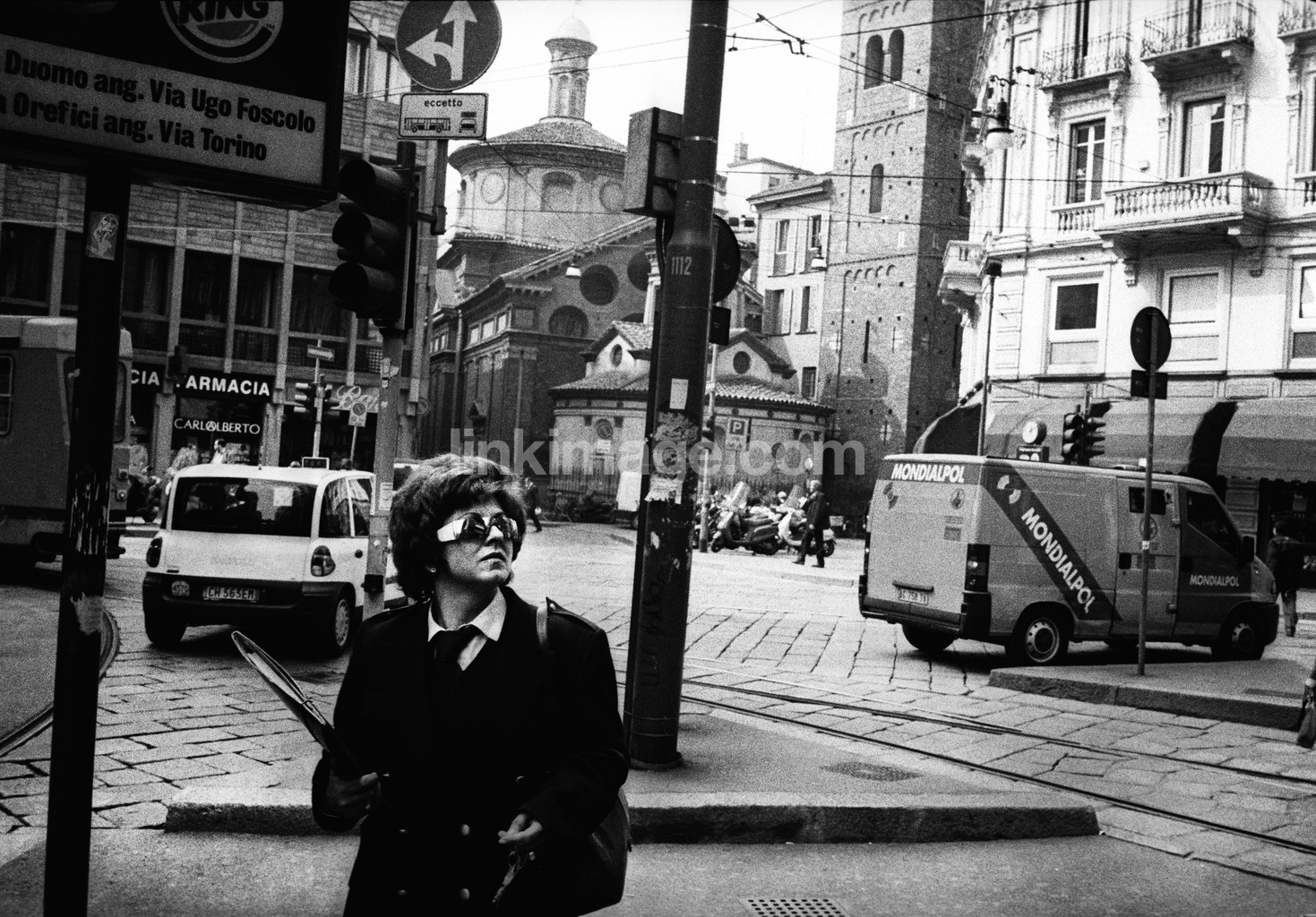 - female, city, street, city, cars, traffic, post