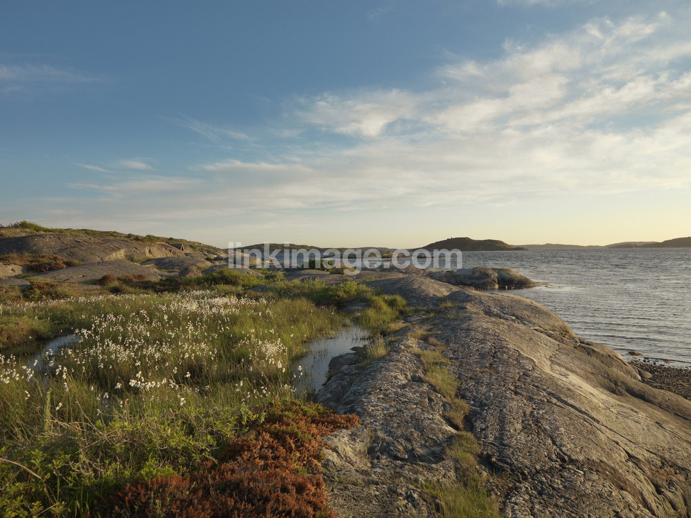 - water, sea, shore, summer, cloud, archipelago, orust, west coast, rocks, plant, spot
