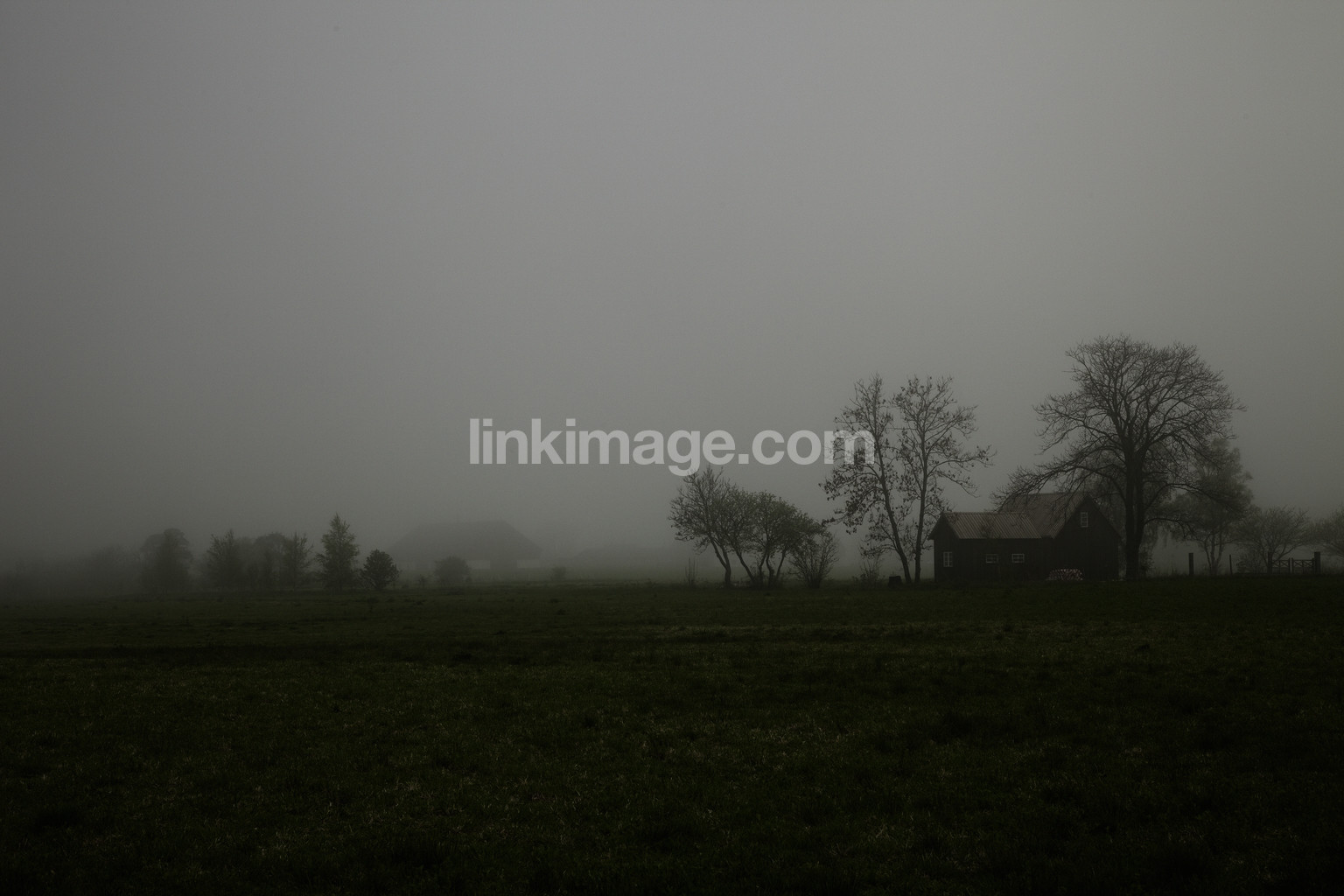 fårö, gotland, spot, fog, weather, overcast, horizon, house, lodging, country, spring, tree, mood, fate