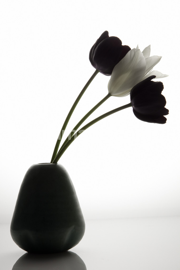 - tulips, flowers, three, vase, plug, still life, black, white, symbol, form, graphic, cut flowers, love