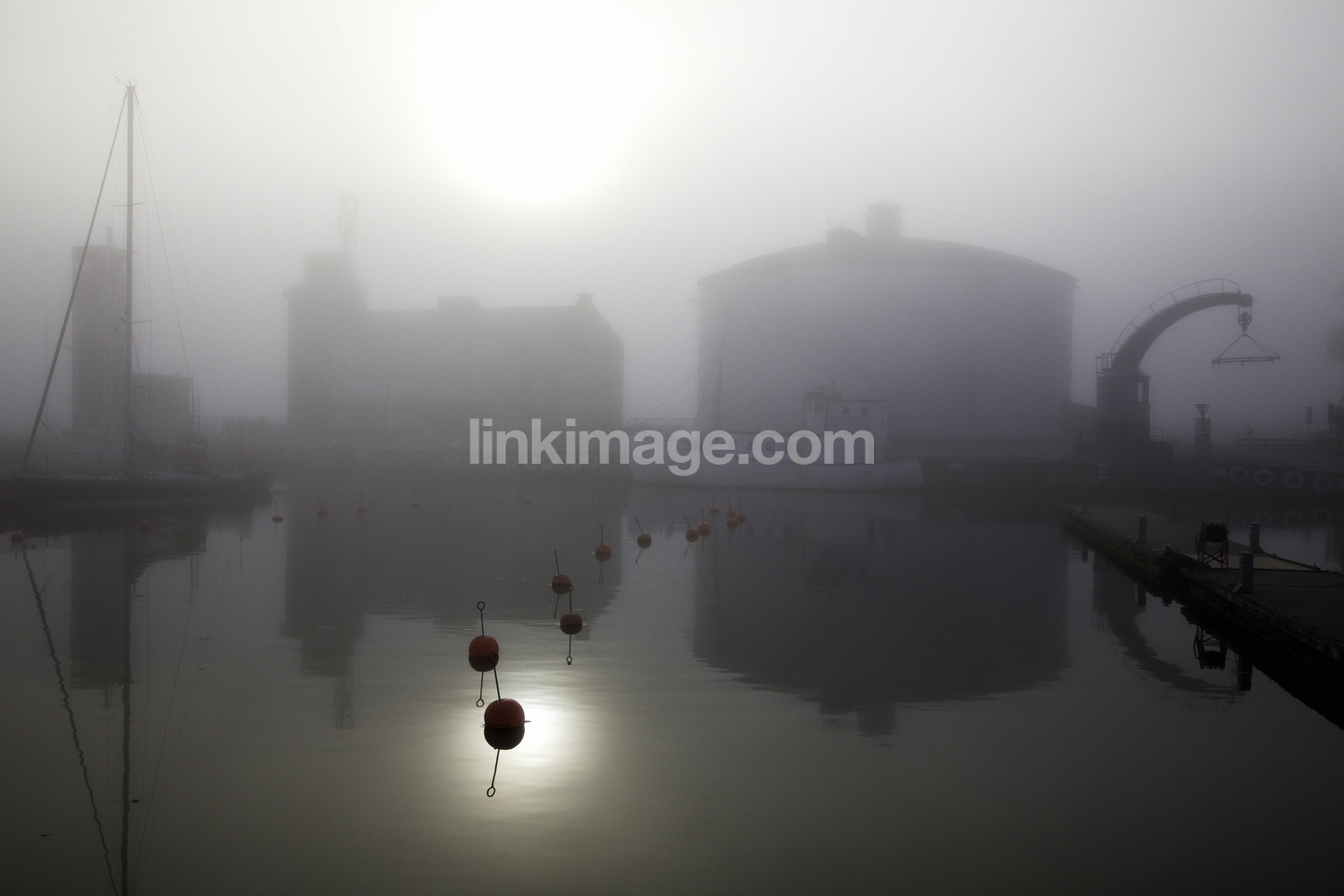 visby, gotland, port, water, silos, marina, båtboj, fog, weather, faucet, fishing boat, mystery