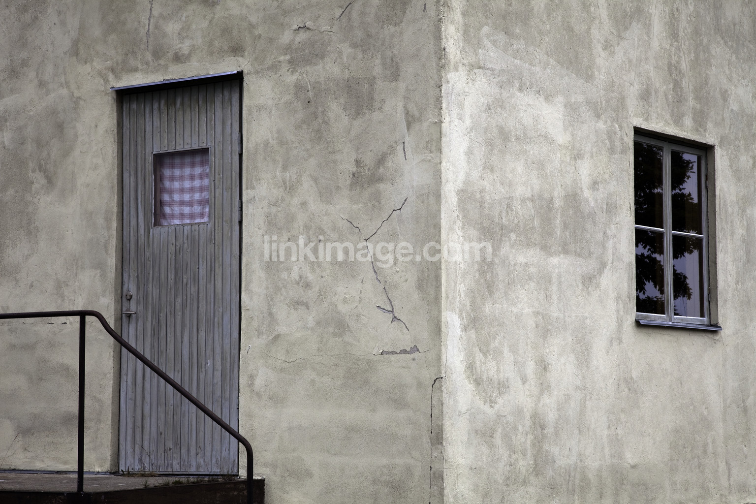 - house, country, door, window, staircase, railing, pattern, form, corner, stone house, plaster, cracks, architecture