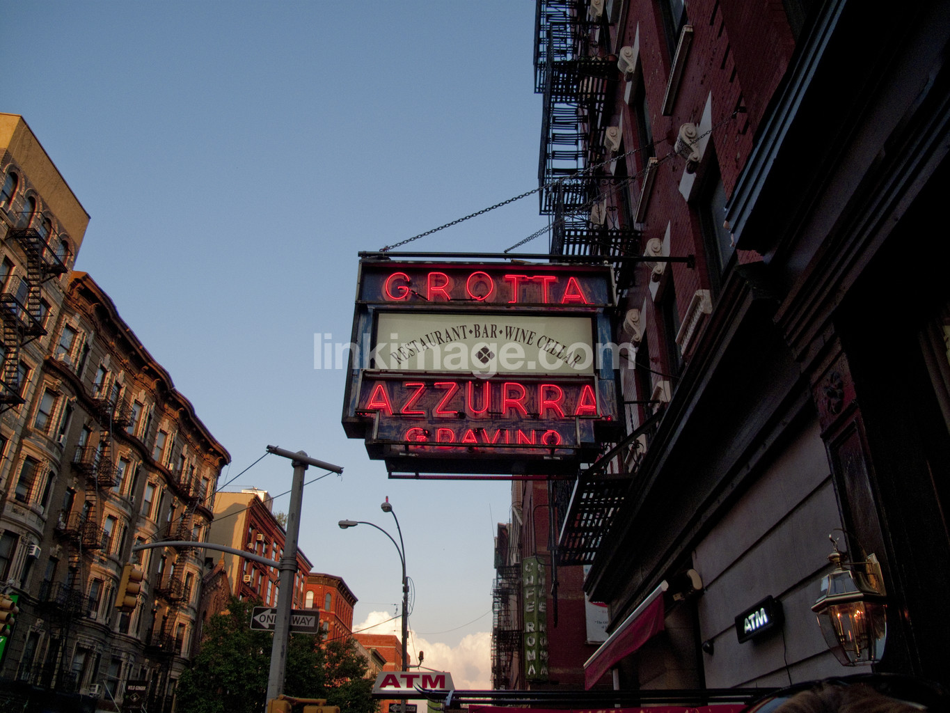 little, italy, new, york, restaurant, cave, azzurra, house, façade, sign, neon, sky