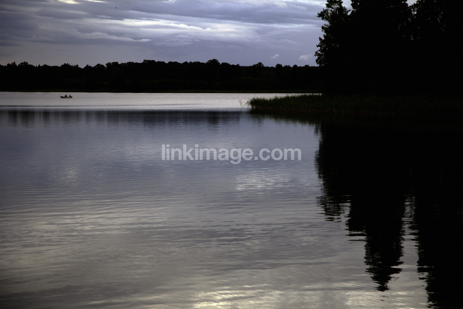 - lake, water, spot, light, boat, fishing, hobby, leisure, dusk, evening, echo, two, horizon, surface, water surface, still, silence, beauty, water mirror, reflex