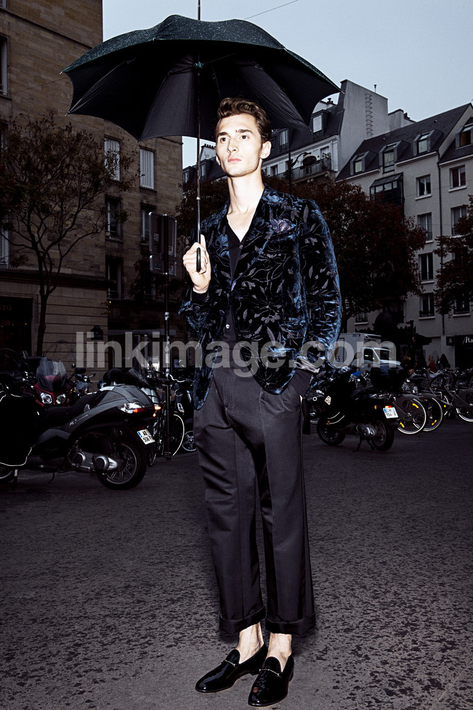 - fashion, male, blazer, out, street, rain, umbrella, weather, black