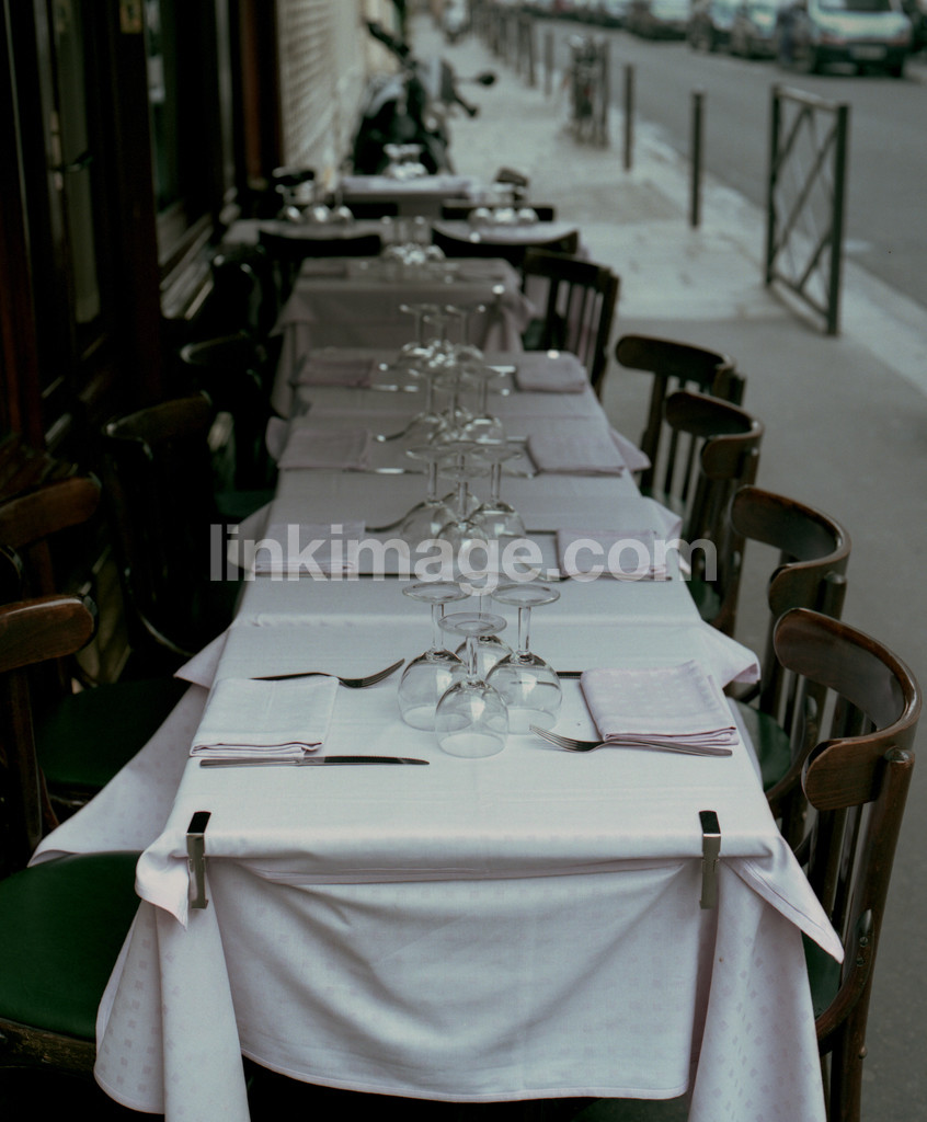 ducat, table, event, dinner, lunch, meal, glasses, wineglass, cloth, street, restaurant, chairs, bk1069