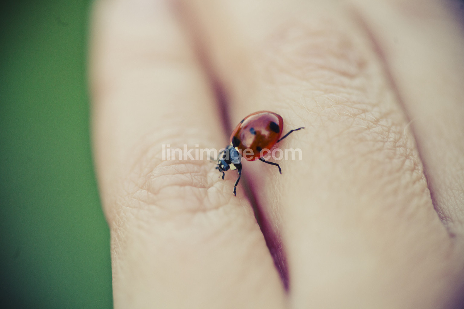 hand, macro, close, meadow, summer, ladybug, spotted, red, climb, fingers, finger
