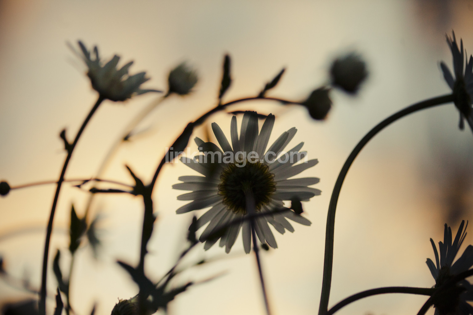 - flower, flowers, macro, close, greenery, green, vegetation, late summer, summer, grass, summer meadow, meadow, daisy, backlight, sunset