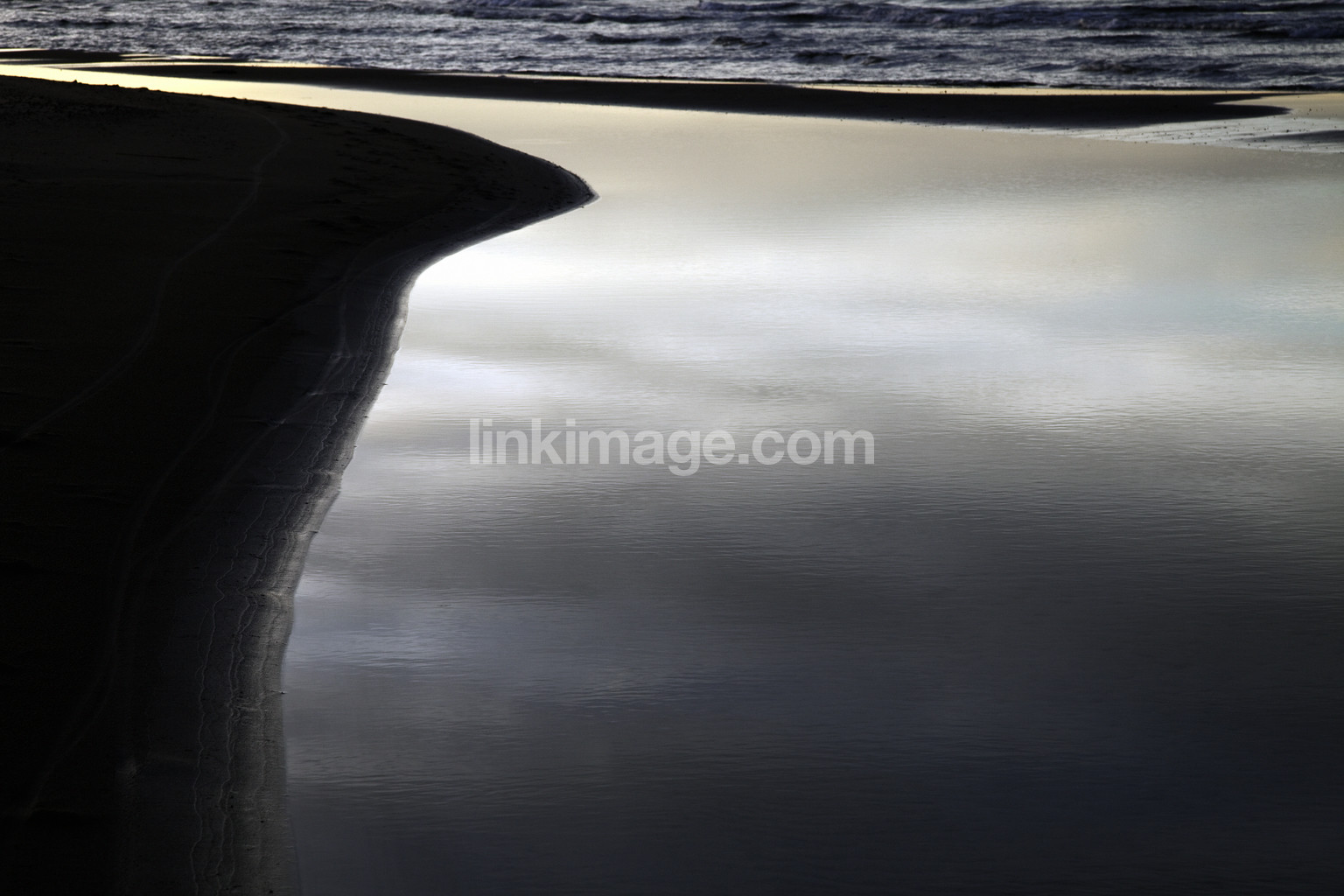 - water, surface, light, sandy beach, line, form, sea, still, spot, reflection, weather, shore