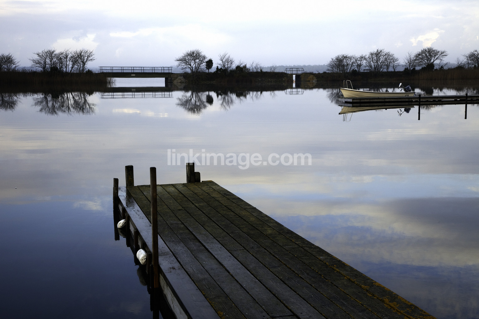 water, reflection, reflex, cloud, still, sky, bridge, marina, light, horizon, tree, boat, surface, water surface, spot