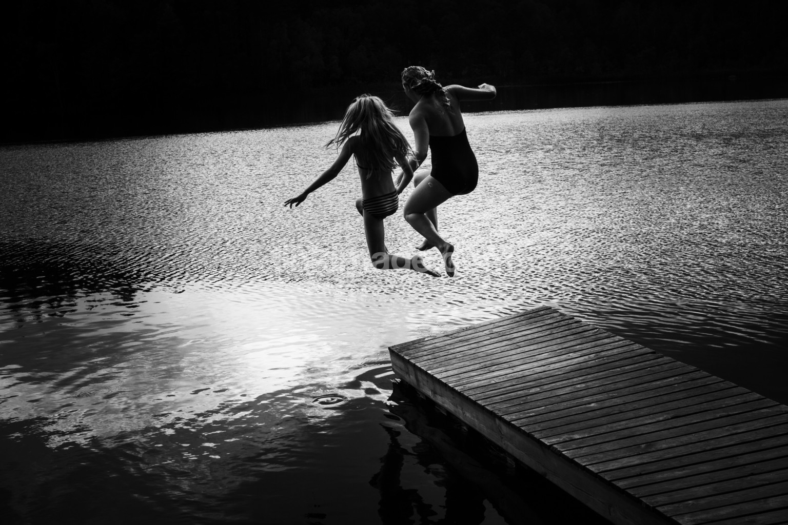 lake, bridge, girl, water, hair, bone, sun, shadow, swim, running, freedom, siblings, jump, dip