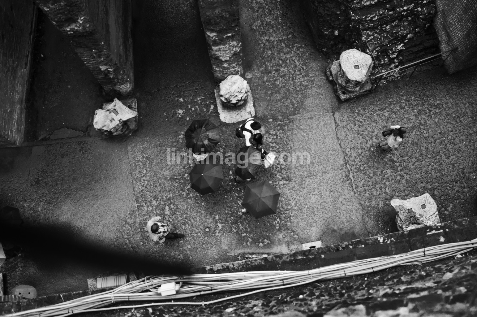 - colosseum, umbrellas, people, arch, brick, rain, male, women, building, old, history, cracking, column
