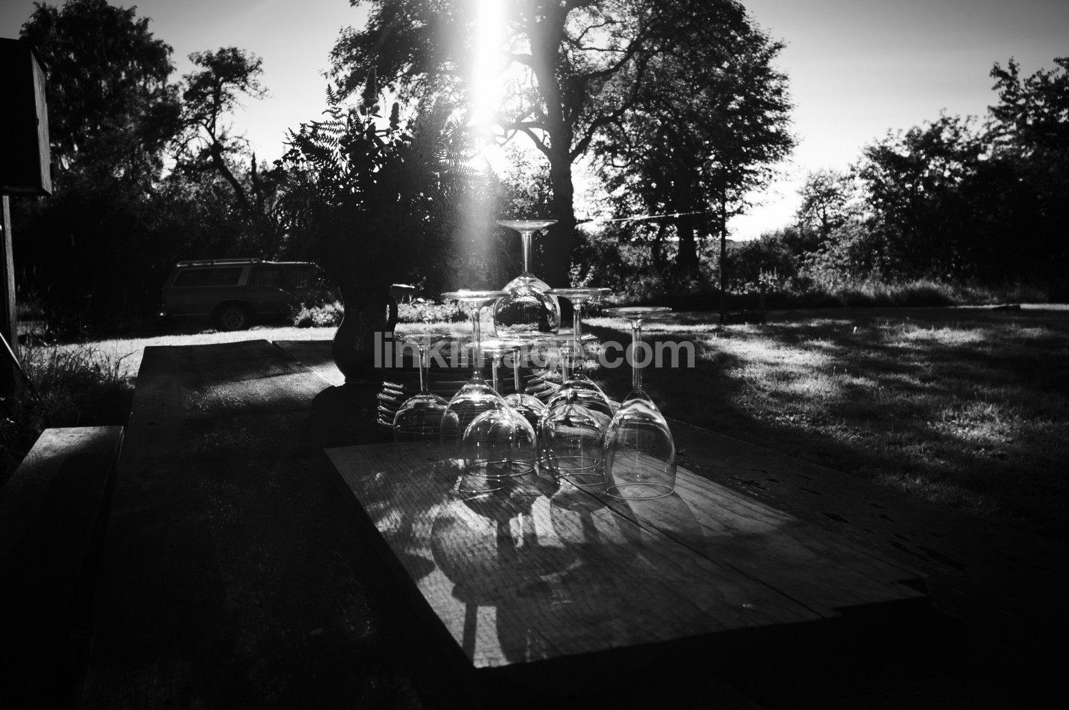 - leaf, tree, fog, mystery, sky, forest, cloud, table, chairs, furniture, garden, trailer light, dusk, golden, hour, wine, wineglass, backlight