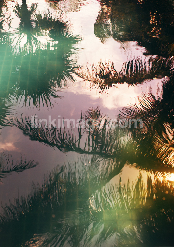- pool bottom, depth, colors, colorful, green, yellow, gold, sky, mexico, cloud, pattern, orange, palm trees, palm, reflection, trip, pink, holiday, swimming pool, shadow, dusk, sun, sunlight, sunset, reflect, tree, water
