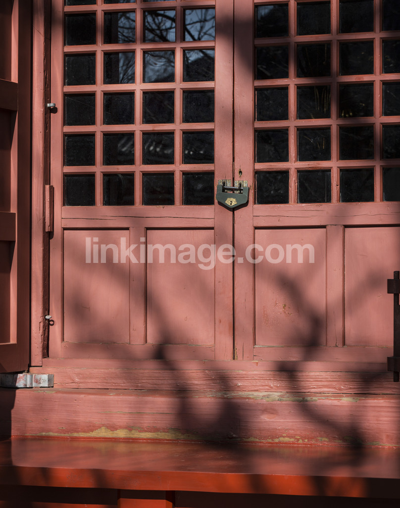 japan, tokyo, temple, doors, locked, wood, red, sun, shadows, window, squares