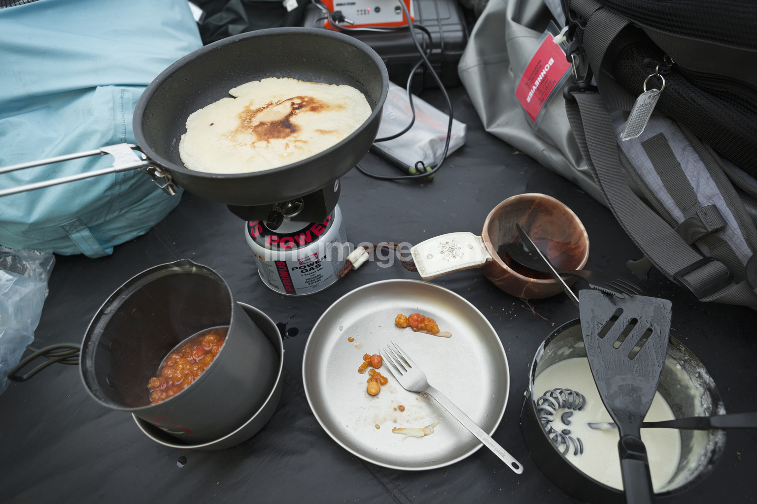 - lapland, outdoor recreation, plate, pancake, jams, cloudberry, cloudberry jam, fried, food, hungry, eat, fork, lunch, else, dinner, camp, dining, camping stove, frying pan, fry, cook, cup, equipment, bag, packing, tent, batter, pancake batter, knife, spatula