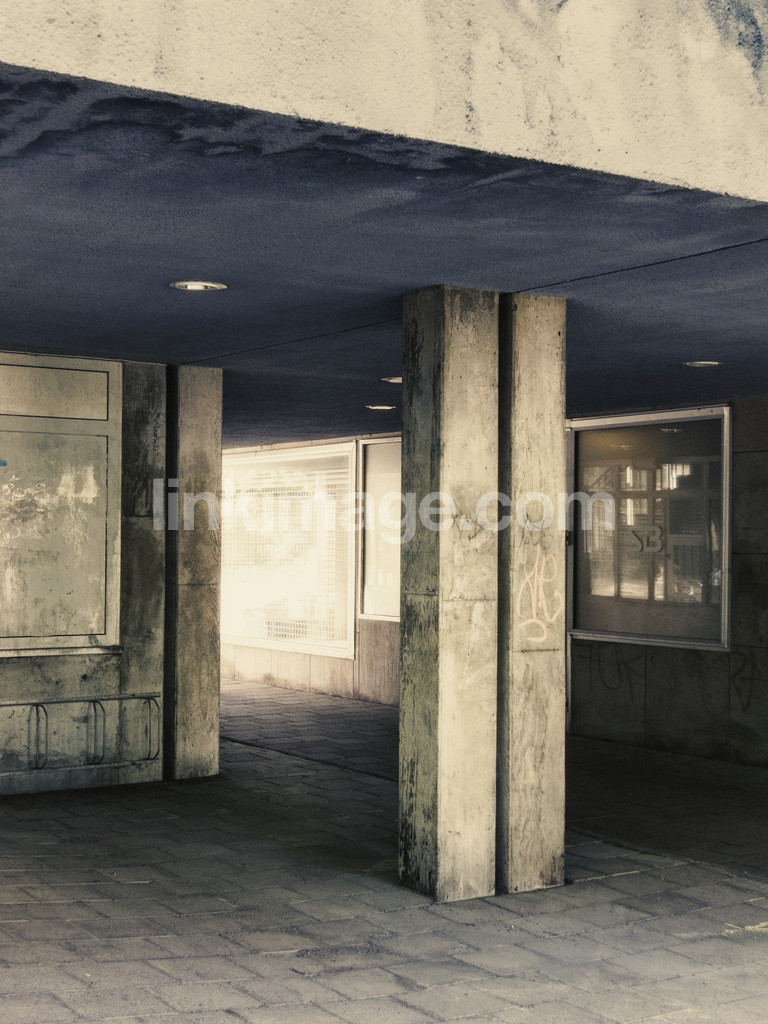 - suburb, southern suburbs, building, column, cyckelställ, concrete, house, graffiti, doodle, window, storefront, worn, time, passage, dirty, smuttsigt, stone slabs, setts, center, reflection