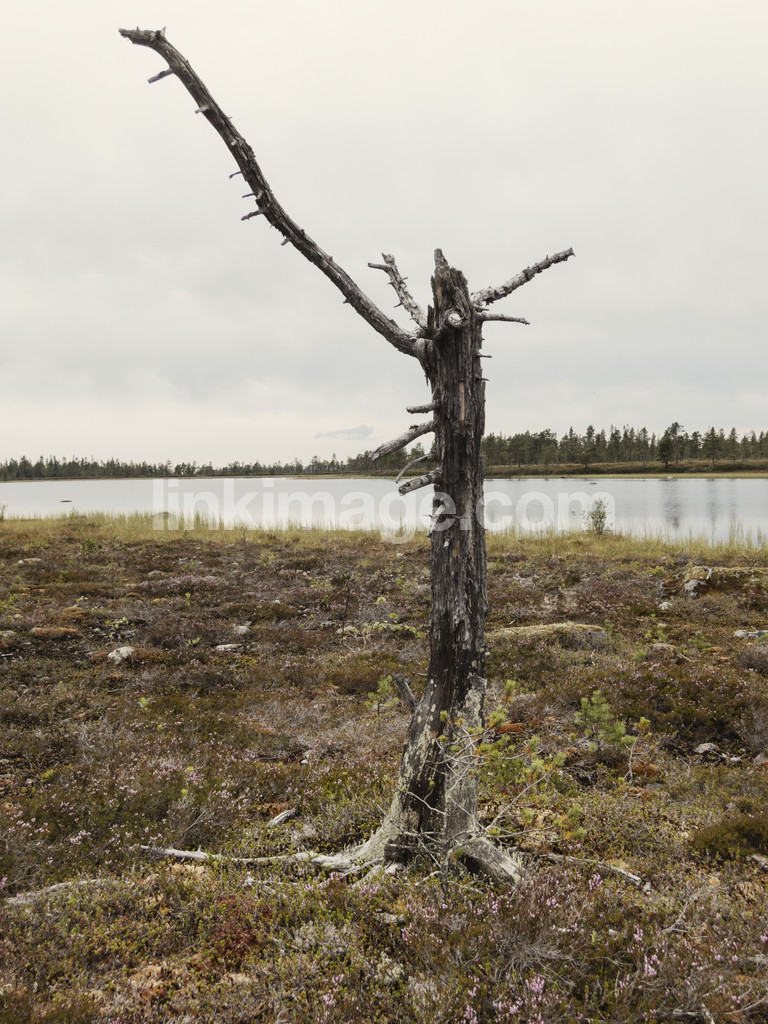 - härjedalen, ytterberg, tree, birch, death, died, mire, summer, lake, water, moss, stone, branch, nature, sky, cloud, overcast, reflection