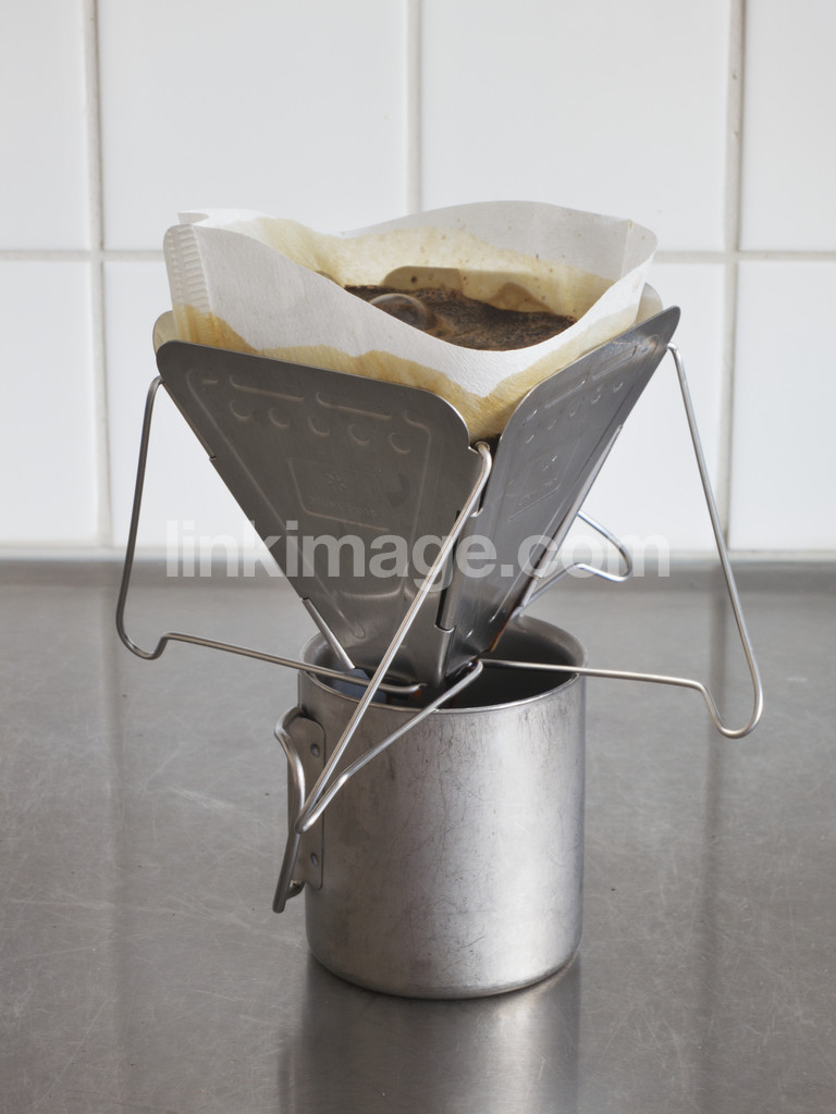 - coffee, filter, coffee grounds, drip coffee, mug, cup, stainless, sink, tile, kitchen, hot, beverage, liquid, handle, set, snow, peek, balance the, stack, else, break, good, paper, wet, humid, indoor, inside
