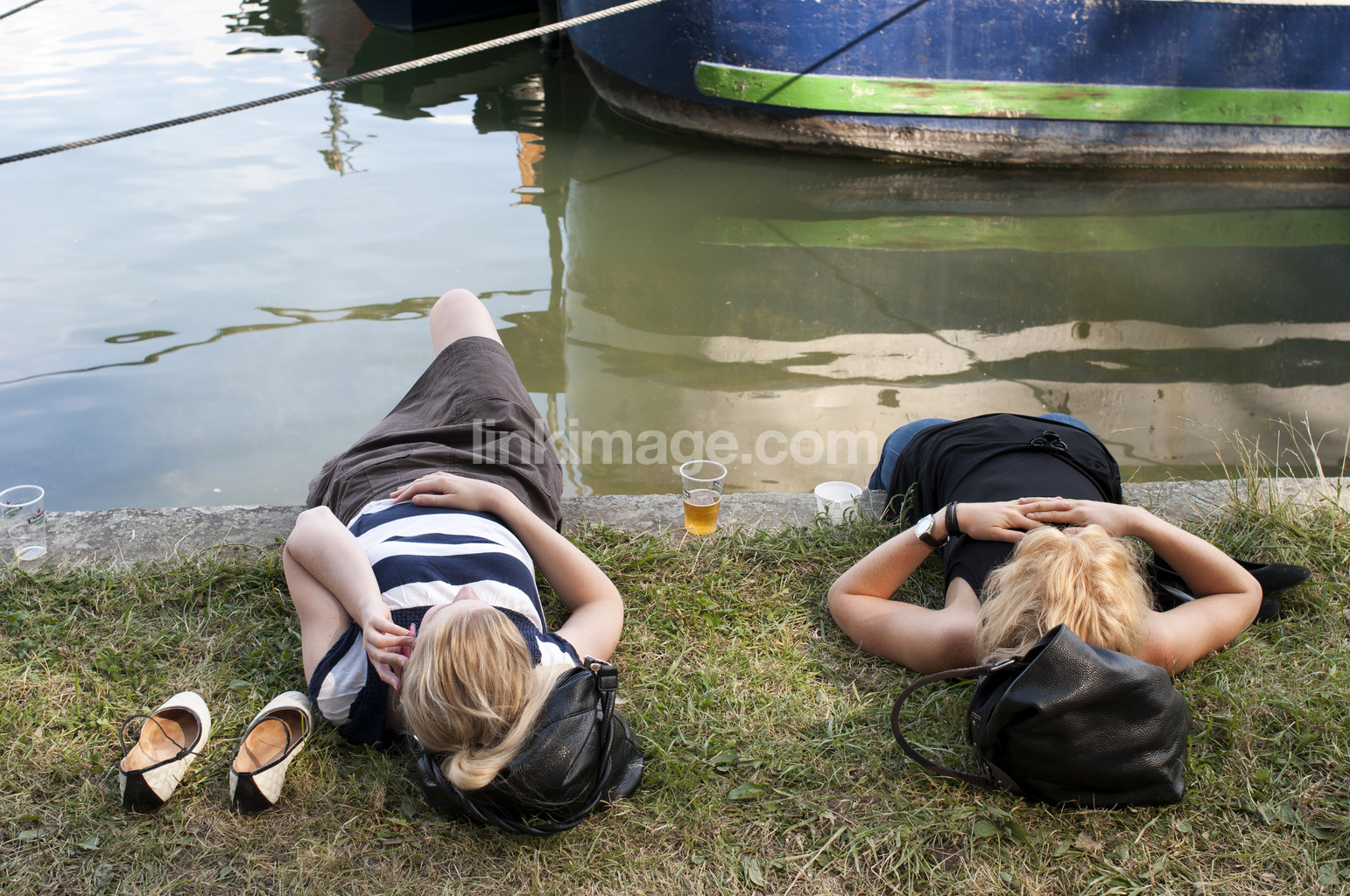 rest, daydream, telephone, call, holiday, relaxed, summer, water, channel, shoes, female, women, girls, beer, boat